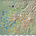 - Figure 2. Seismometer station locations for the two-year passive array deployment of the Cascadia iMUSH multi-institution program (lead PI Ken Creager). Stations are plotted in GeoMapApp on a 10-meter GMRT base map and shaded according to station elevation, with warmer colors indicating higher elevations. The array comprises 71 stations centered upon Mount St. Helens and links in GeoMapApp point to detailed station and network information at IRIS.